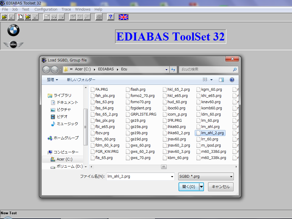 該当するPRGファイルを選択